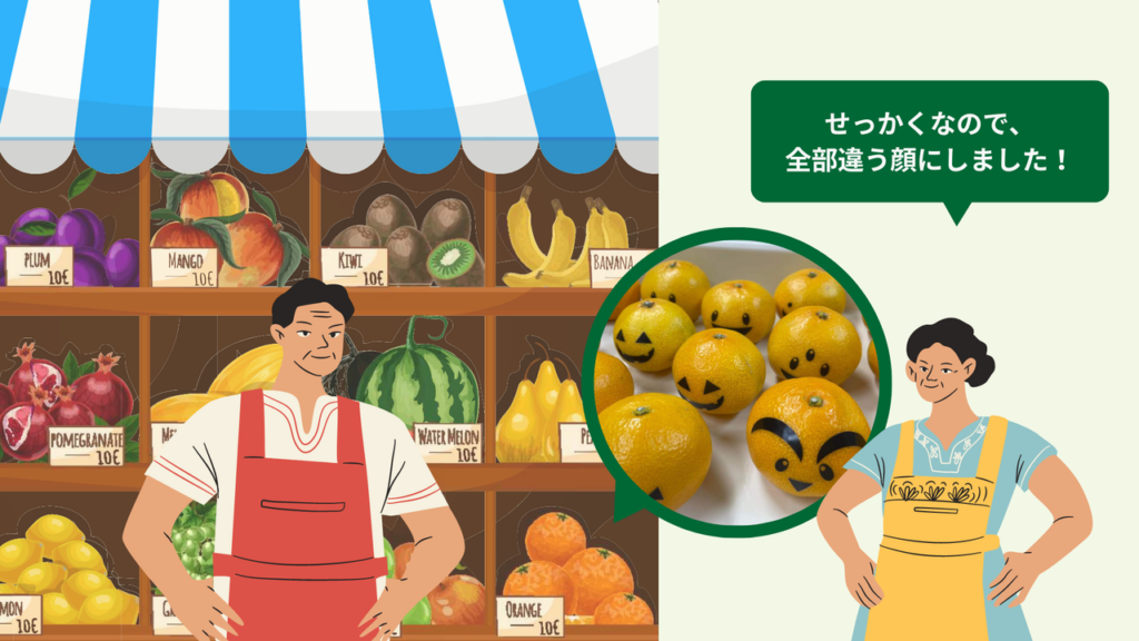 すると、「せっかくなので、全部違う顔にしました!」とオバケのみかんを見せてきたんです。