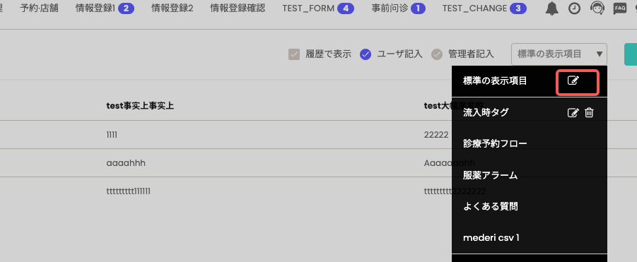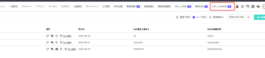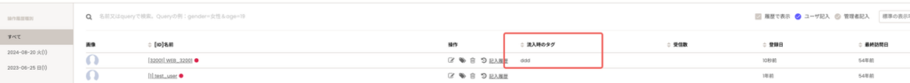 miniappの記入履歴の画面にて、流入時のタグを表示可能に