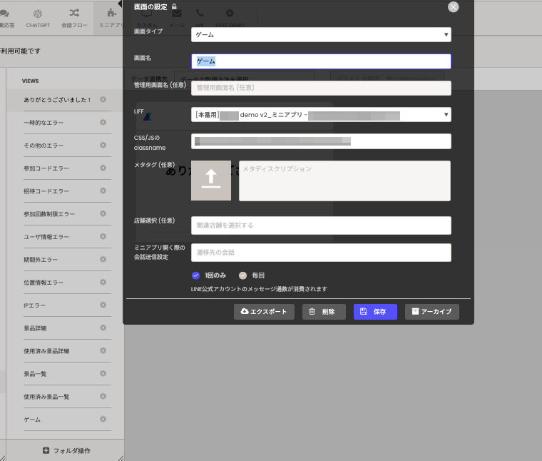 紐付きたい公式ミニアプリを未設定の場合は、LINE設定の1目の情報を持って、ミニアプリのLINE URLを表示される。