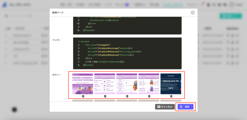 HTMLコードを入力し、ランディングページを作成することが可能です。