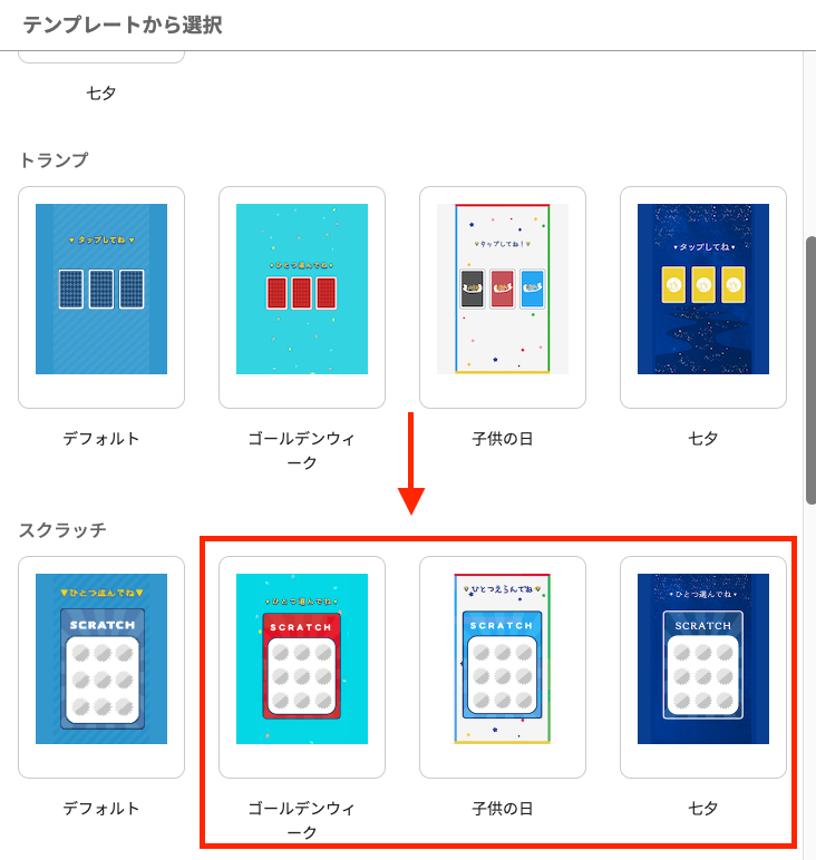 スクラッチゲームをゲーム編集画面にてカスタマイズいただけるようになりました。