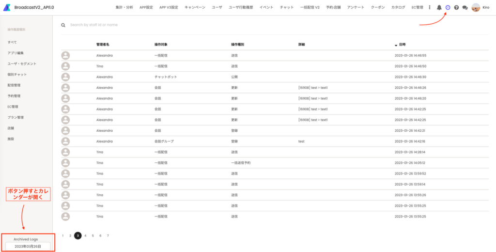 この機能のおかげで、操作履歴ページの読み込み時間も大幅に短縮されました。 2ヶ月以上前の操作履歴内容はアーカイブされ、ページ左下のカレンダーからアクセスできるようになります。