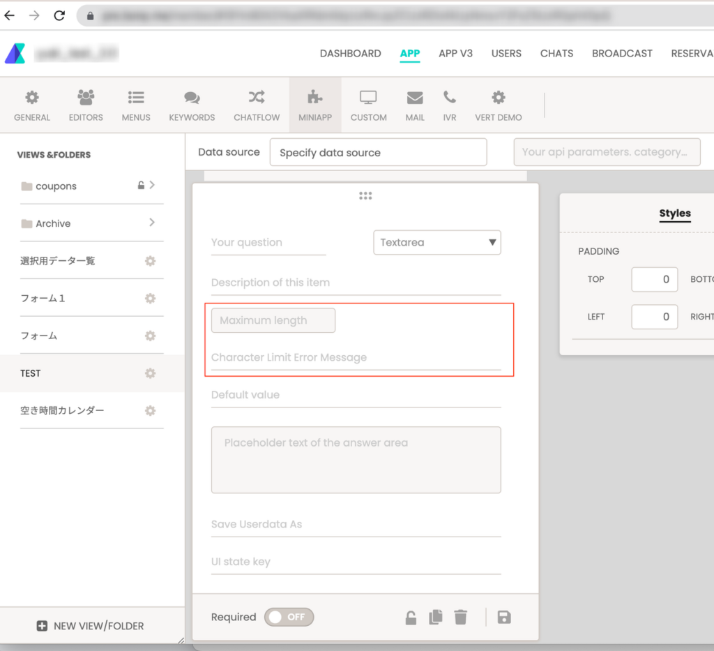 テキストエリアの最大文字数をユーザーが指定できるようになりました
