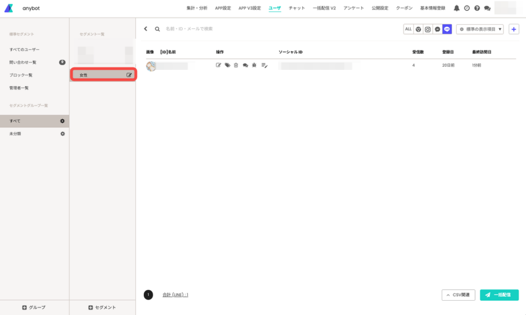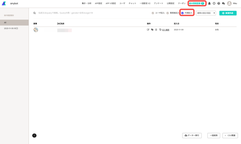 2.2管理者が代行で記入した内容を持ってセグメントの作成にもご利用可能です。