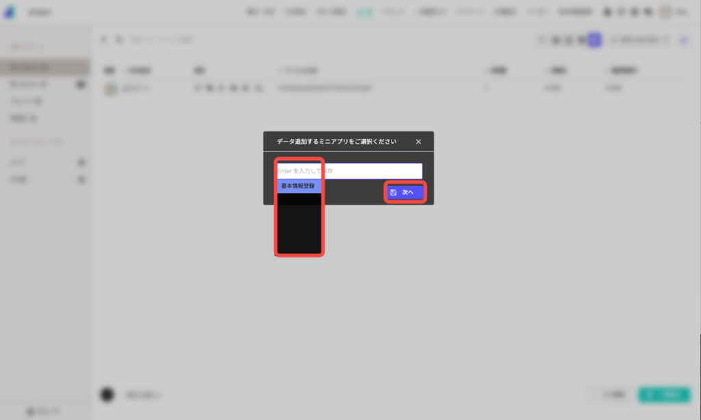 1.5管理者による記入をしたいミニアプリを選択して[次へ]のボタンをクリック