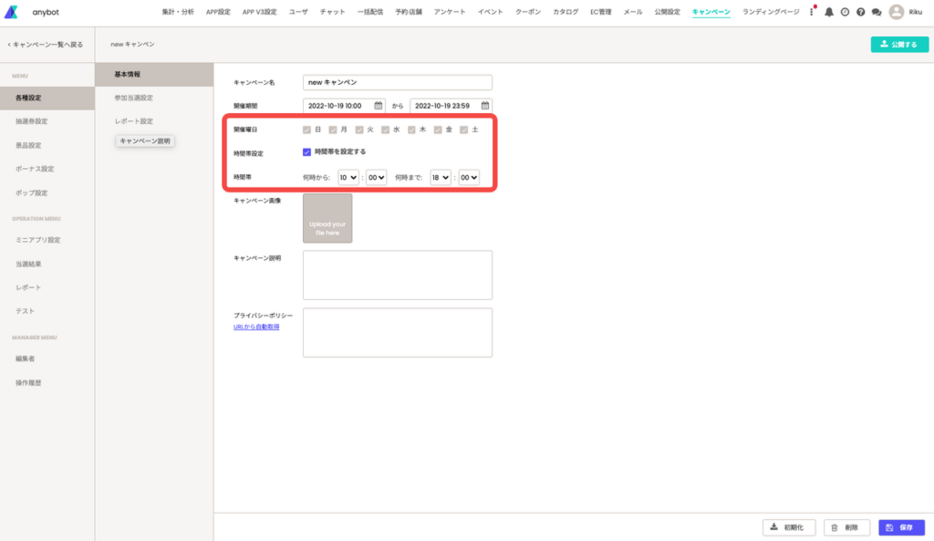 ゲームキャンペーンが開催する曜日や開催の時間帯の指定が可能になりました。
