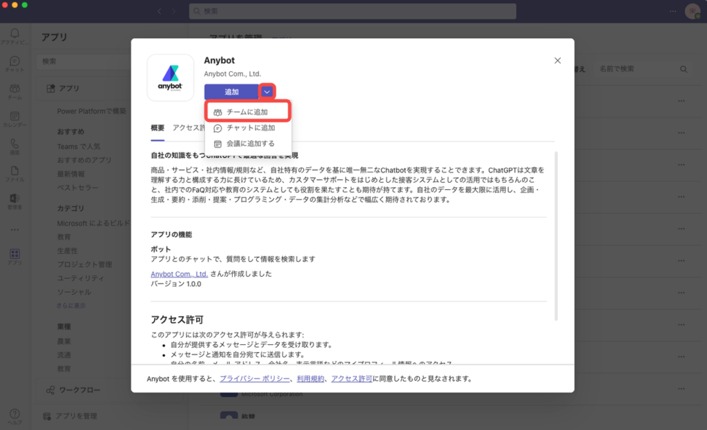 1.anybot appをTeamsに追加