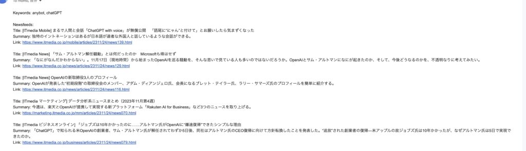 3.GPTの理解力を生かして、関連性の曖昧検索を行い、対象ニュースをピックアップする。