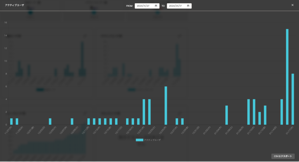それぞれのブロックの右上の拡大ボタンで、日別のユーザー数の確認が可能となります。