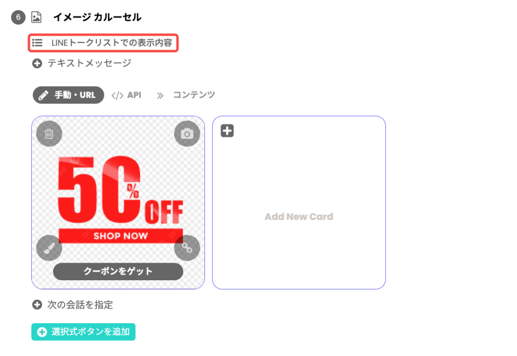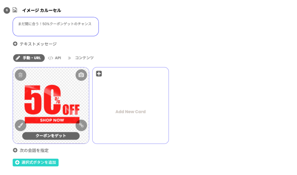 従来は、anybotのカード、イメージカルーセル、イメージカルーセルを配信する際に、