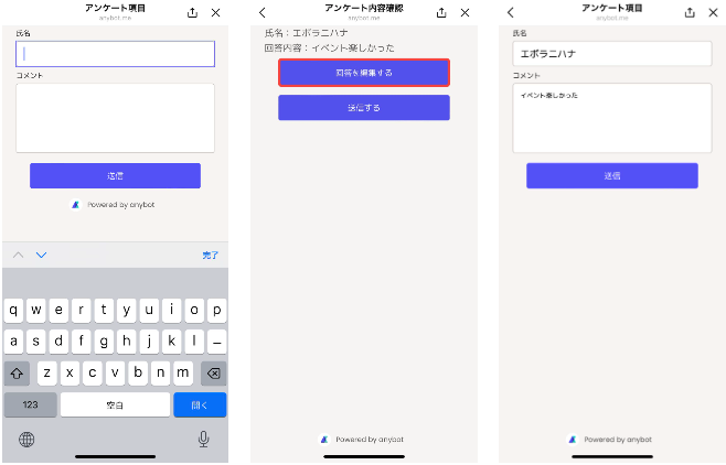 お客様がアンケートを回答した後に、アンケート回答の内容を確認の画面にて、