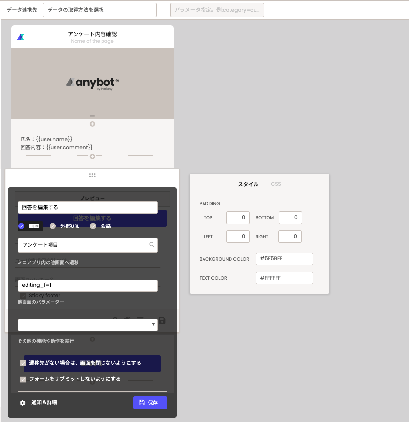 ボタンの編集画面にて、他画面のパラメーターという項目にて、「editing_f=1」を入力